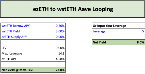 a. ezETH 到 wstETH 的 Aave 循环借贷: